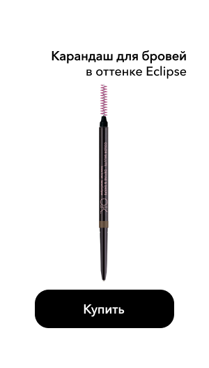 Я использую для всей этой магии карандашик от OK Beauty, оттенок Eclipse. Я обожаю его именно за тот нейтральный коричневый оттенок, который смотрится отлично на всех моих клиентках, даже с теплым подтоном.