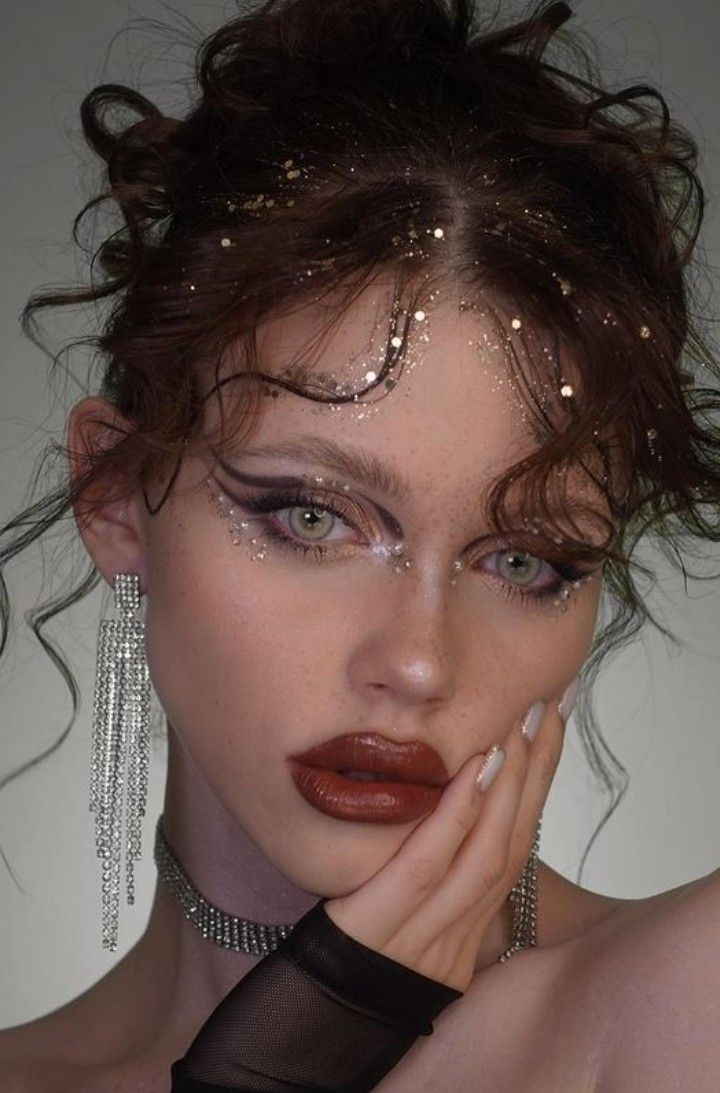 В новогоднюю ночь не стесняйтесь выбирать яркие цвета и спарклы. Какие цвета обязательно должны быть в макияже на Новый год 2026? Это бургунди, зеленый и шампань. Они легко комбинируются друг с другом и сочетаются почти с любыми другими цветами.